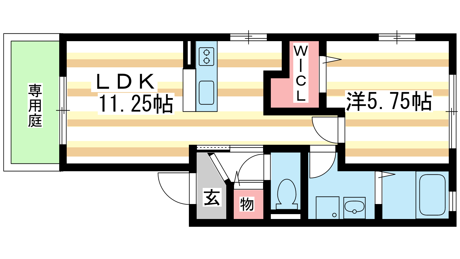 - 洋室5.75帖、LDK11.25帖