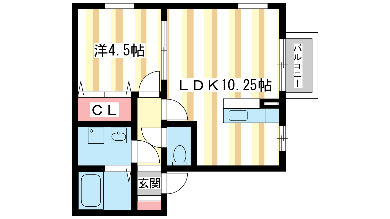 - 洋室4.5帖、LDK10.25帖