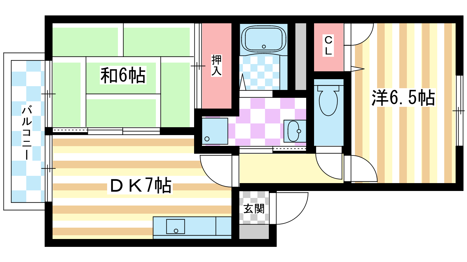 - 和室5.5帖、洋室6.4帖、DK8帖