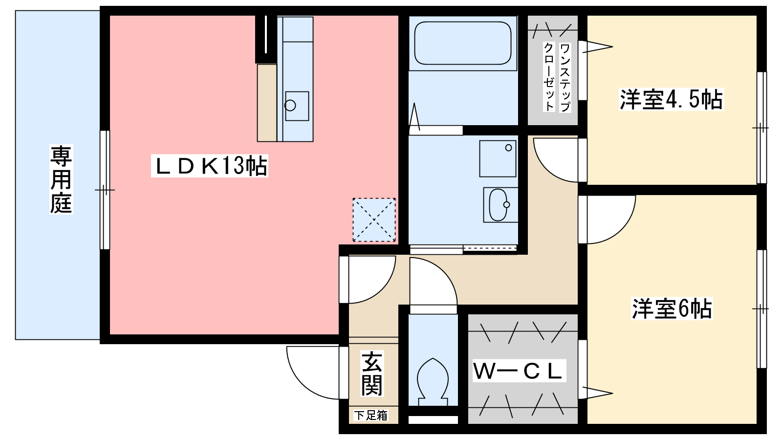 - 洋室6帖、洋室4.5帖、LDK13帖