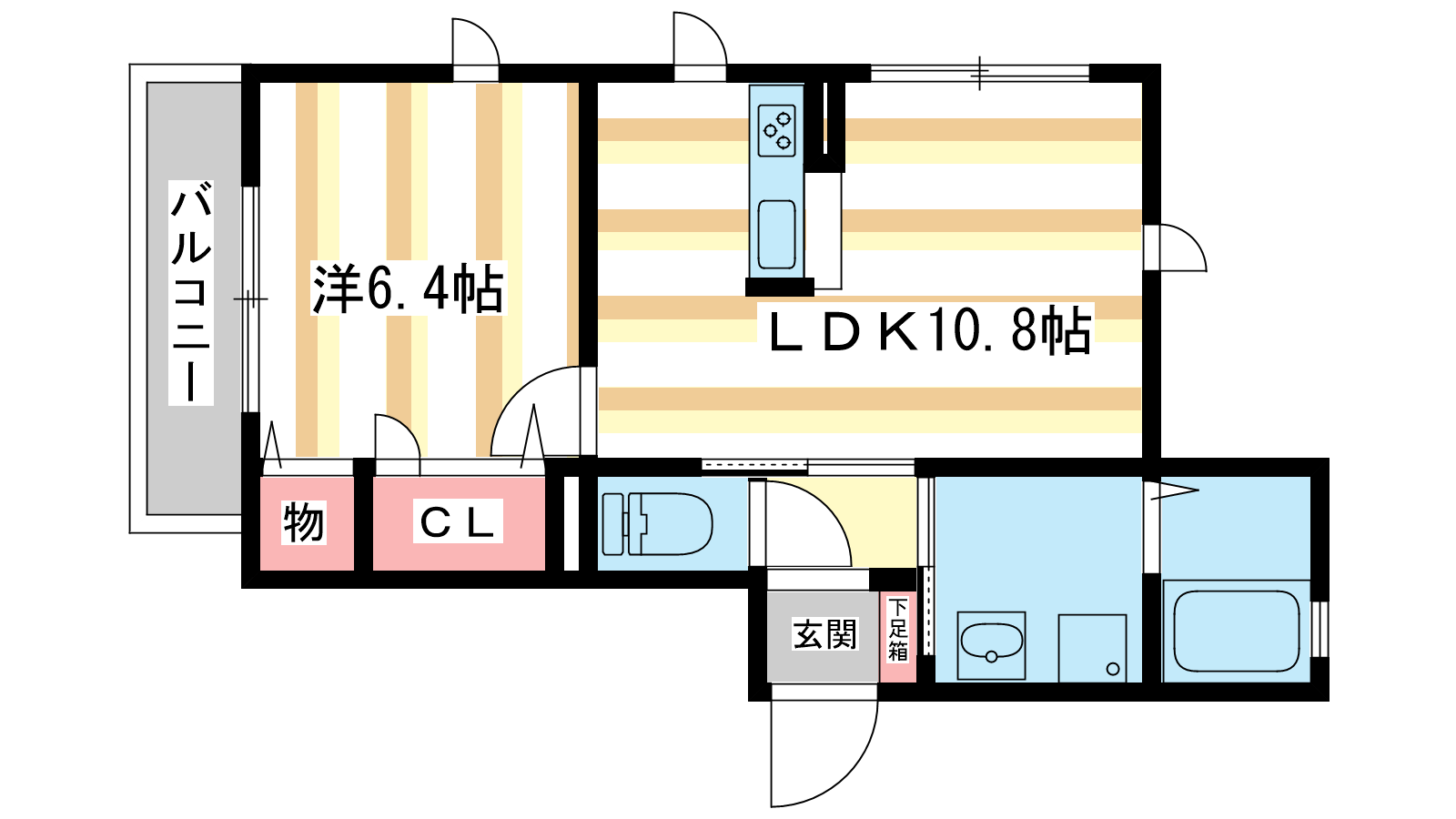 - 洋室6.4帖、LDK10.8帖