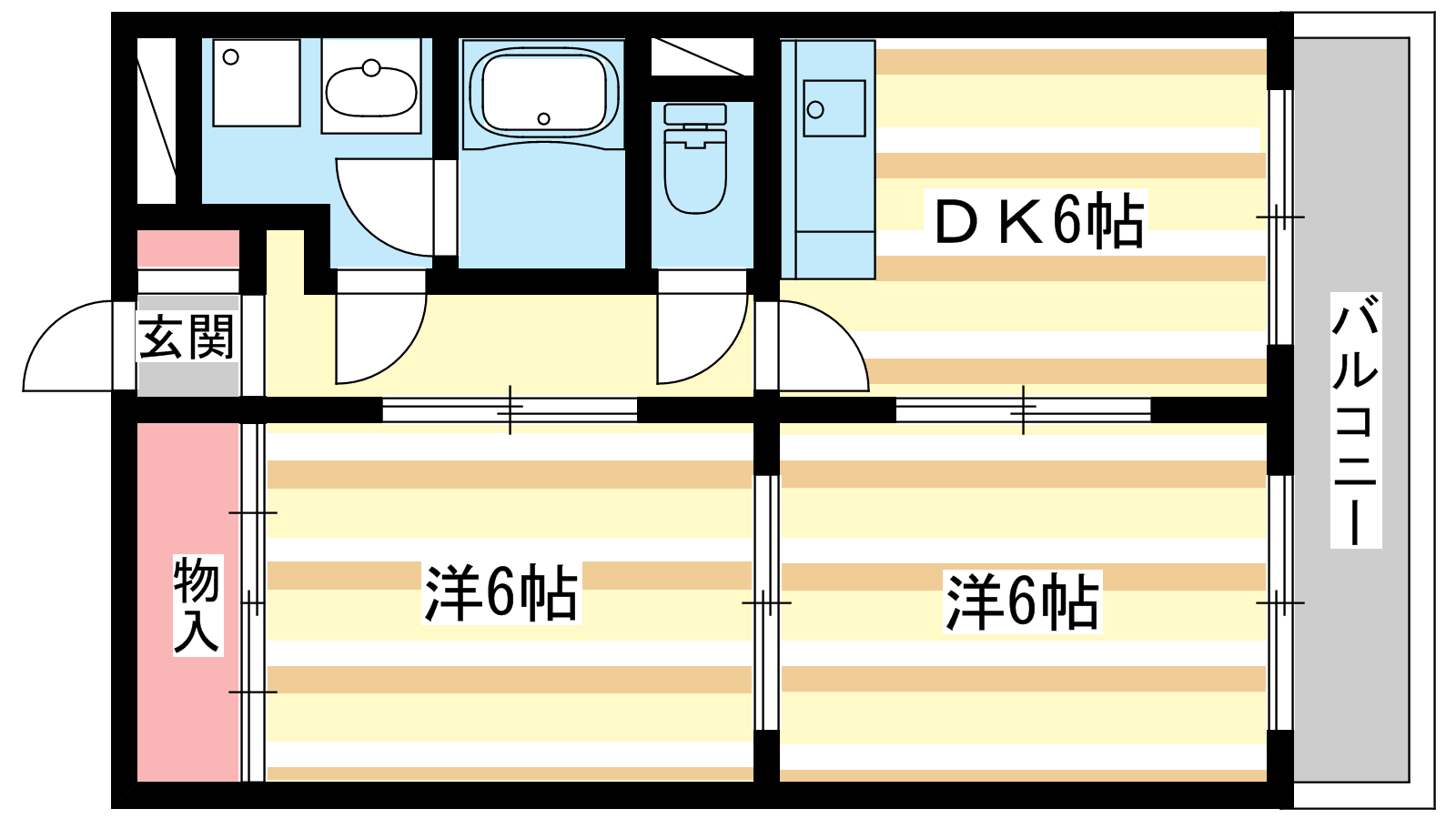 - 洋室6帖、洋室6帖、DK6帖
