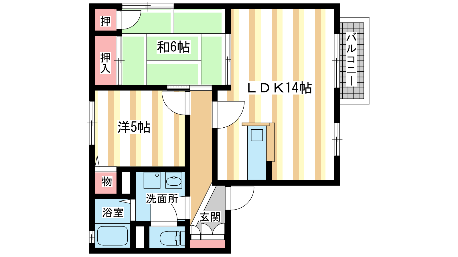 - 洋室5帖、和室6帖、LDK14帖