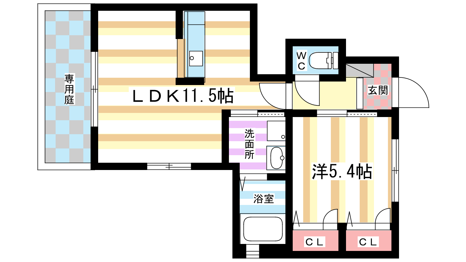 - 洋室5.4帖、LDK12.3帖