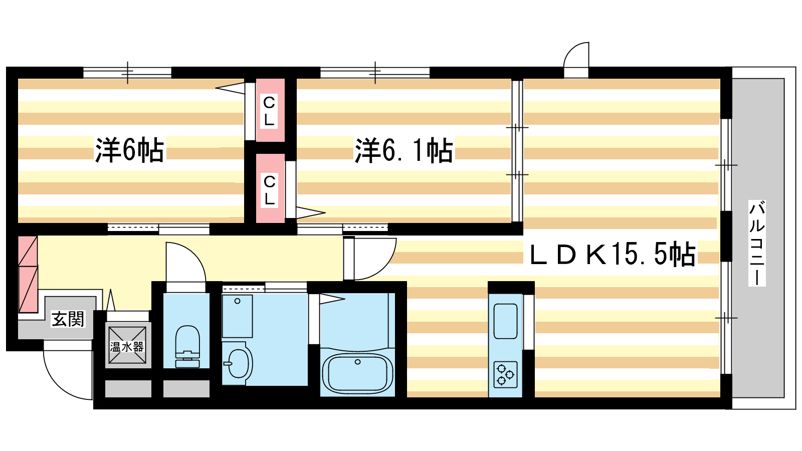 - 洋室6.1帖、洋室6帖、LDK15.5帖