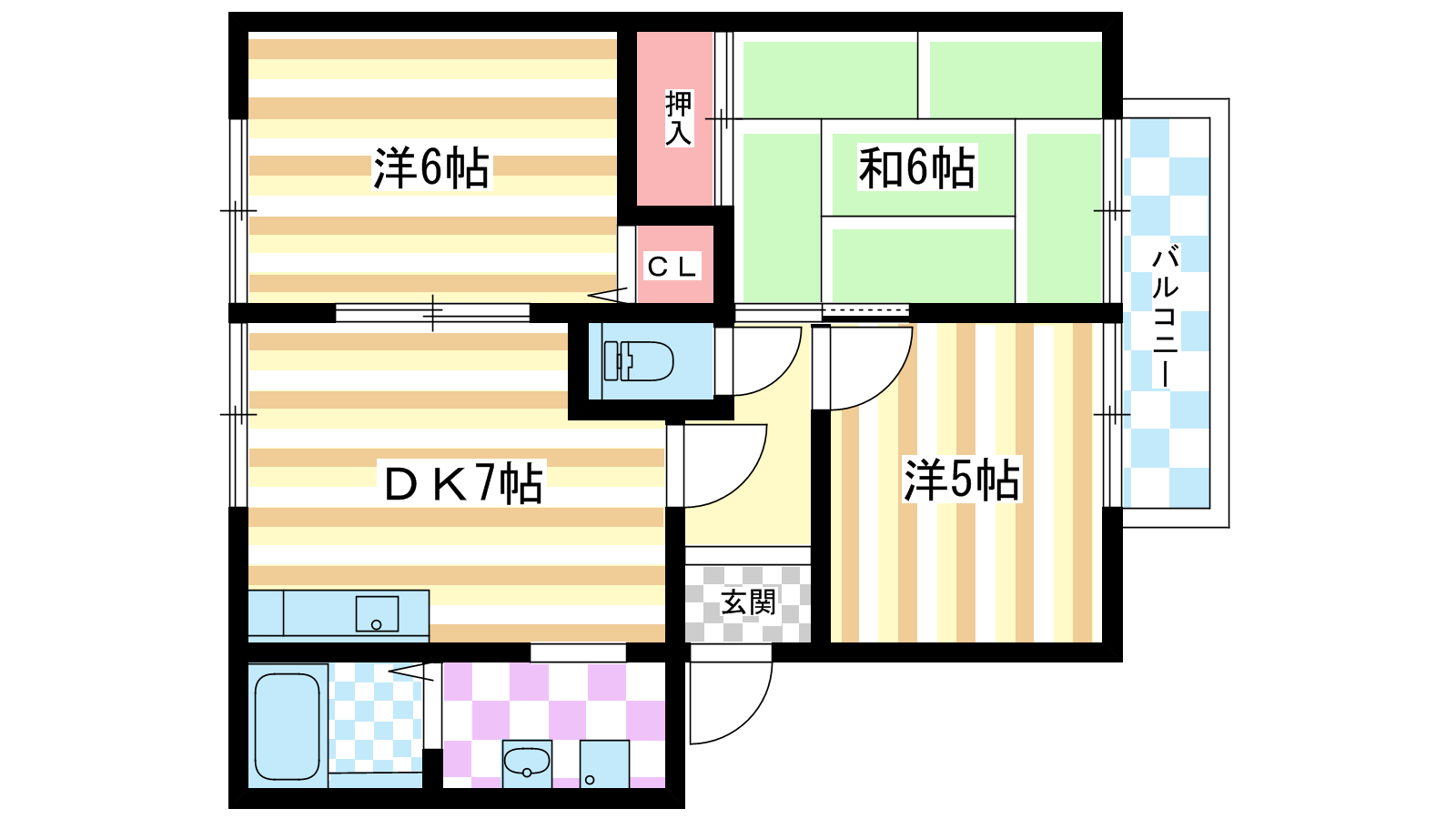 - 洋室4.5帖、洋室6帖、和室6帖、DK6.9帖