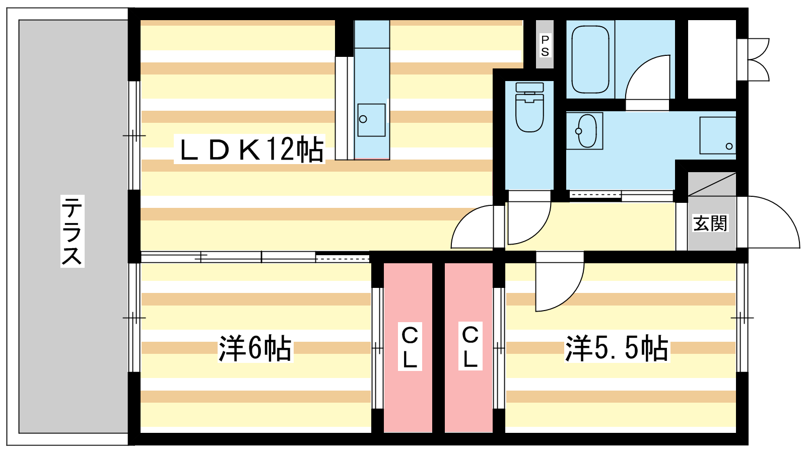 - 洋室5.6帖、洋室6帖、LDK11.7帖