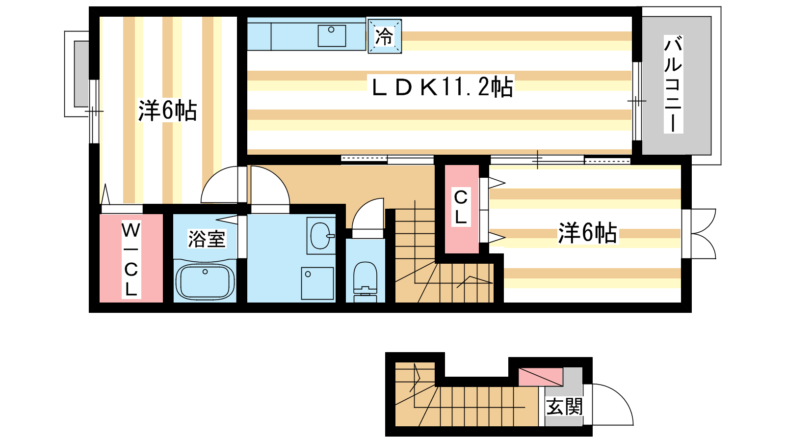- 洋室6帖、洋室6帖、LDK11.2帖