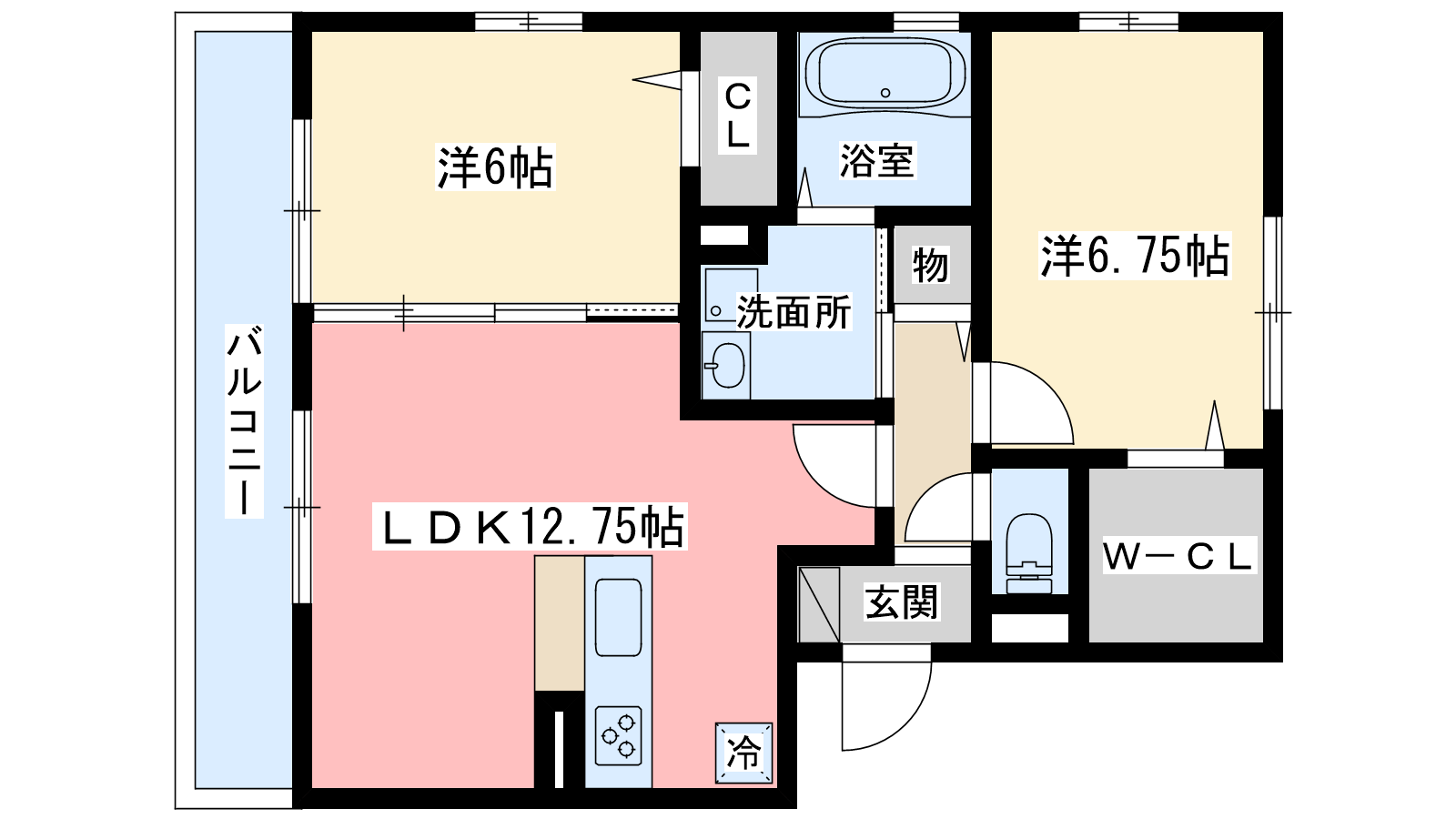- 洋室6.75帖、洋室6帖、LDK12.75帖