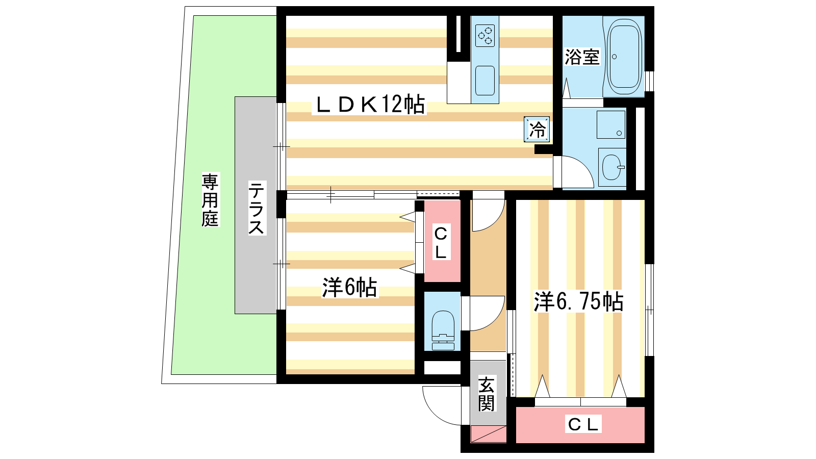 - 洋室6.75帖、洋室6帖、LDK12帖