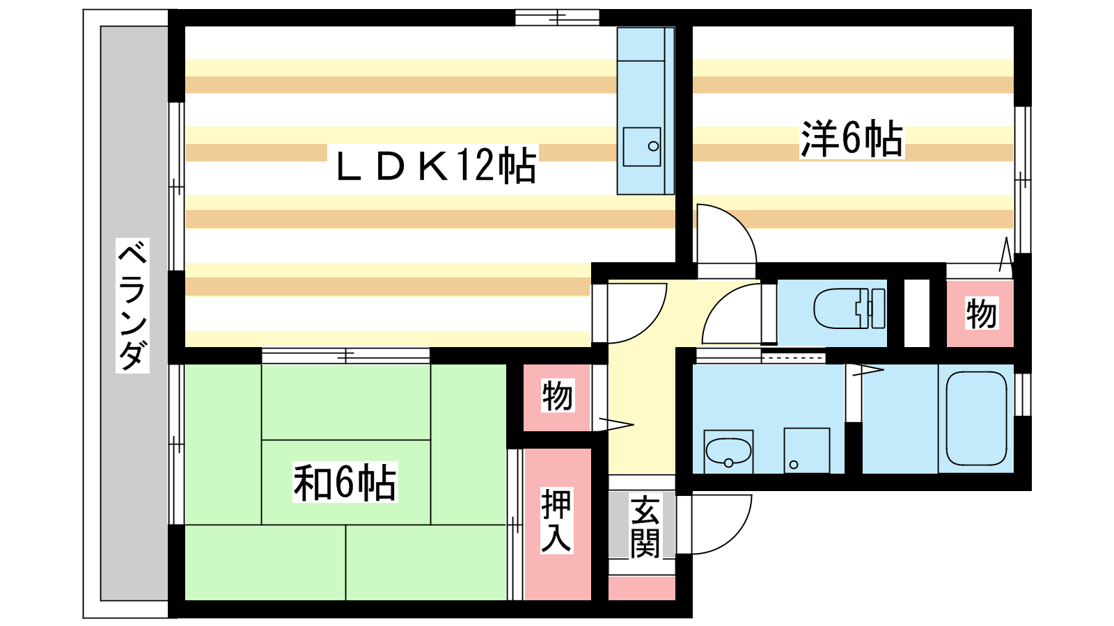 - 和室6帖、洋室6帖、LDK12帖
