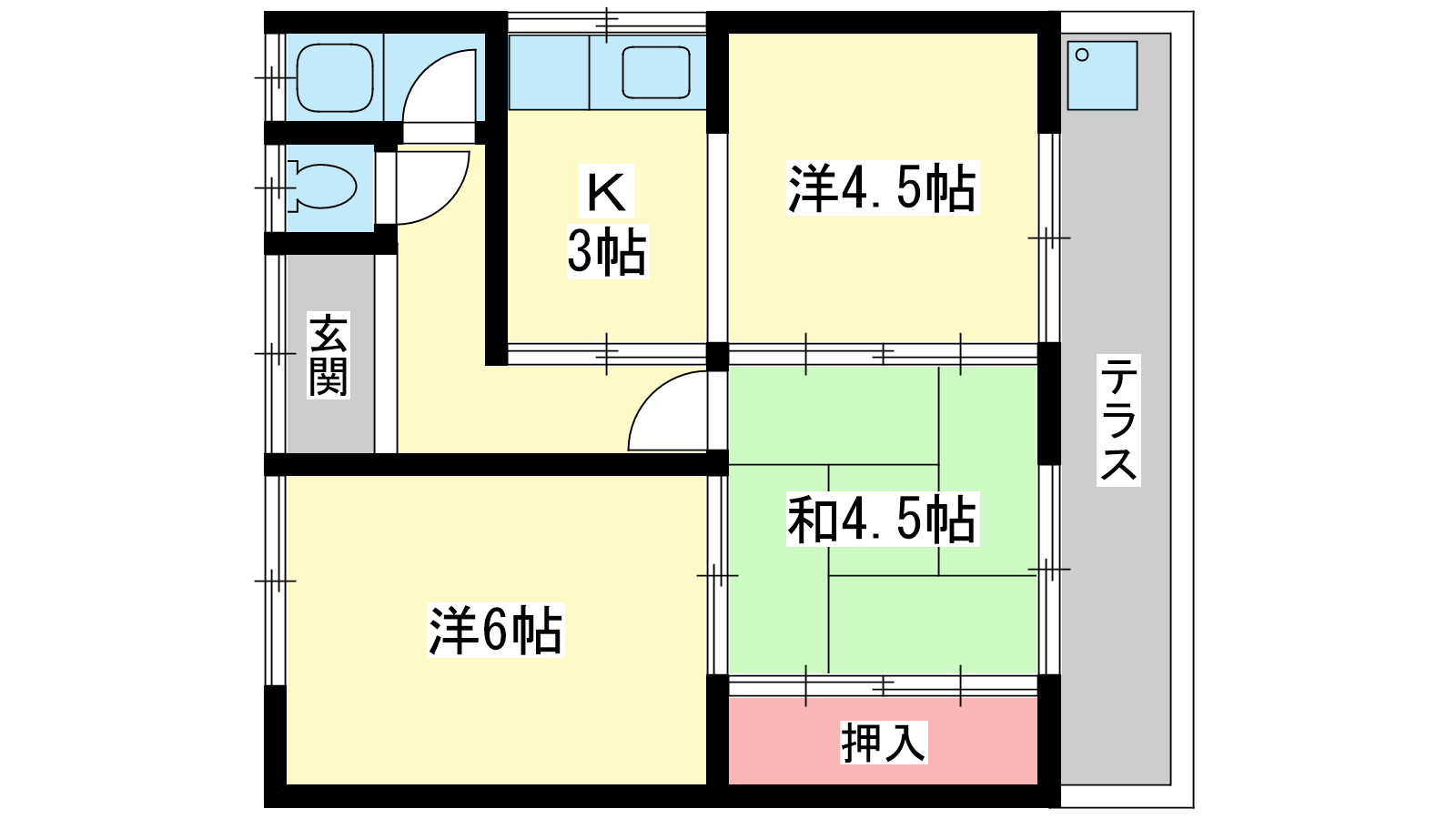 - K3帖、洋室6帖、洋室4.5帖、和室4.5帖