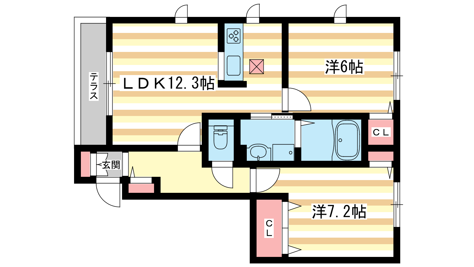 - LDK12.3帖、洋室7.2帖、洋室6帖