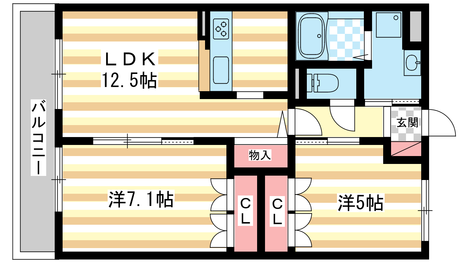 - 洋室7.1帖、洋室5帖、LDK12.5帖
