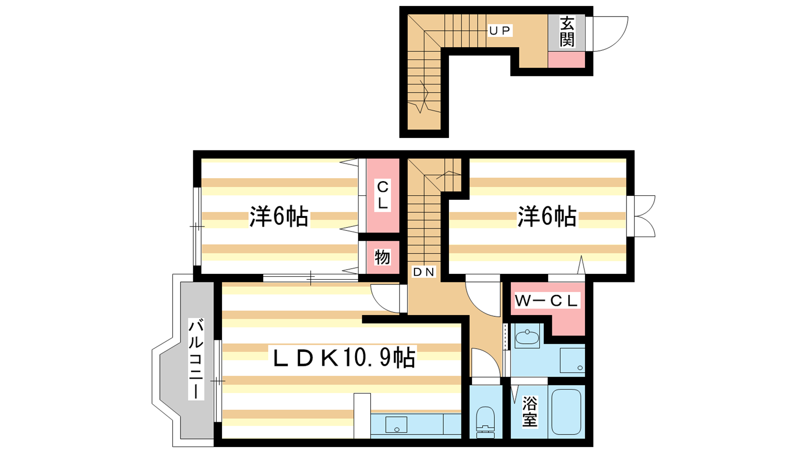 - 洋室6帖、洋室6帖、LDK10.9帖