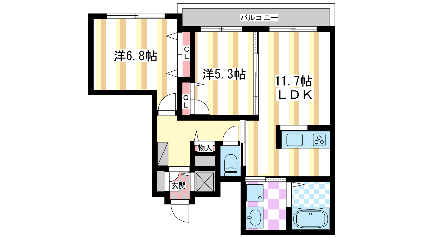 - LDK11.7帖、洋室6.8帖、洋室5.3帖