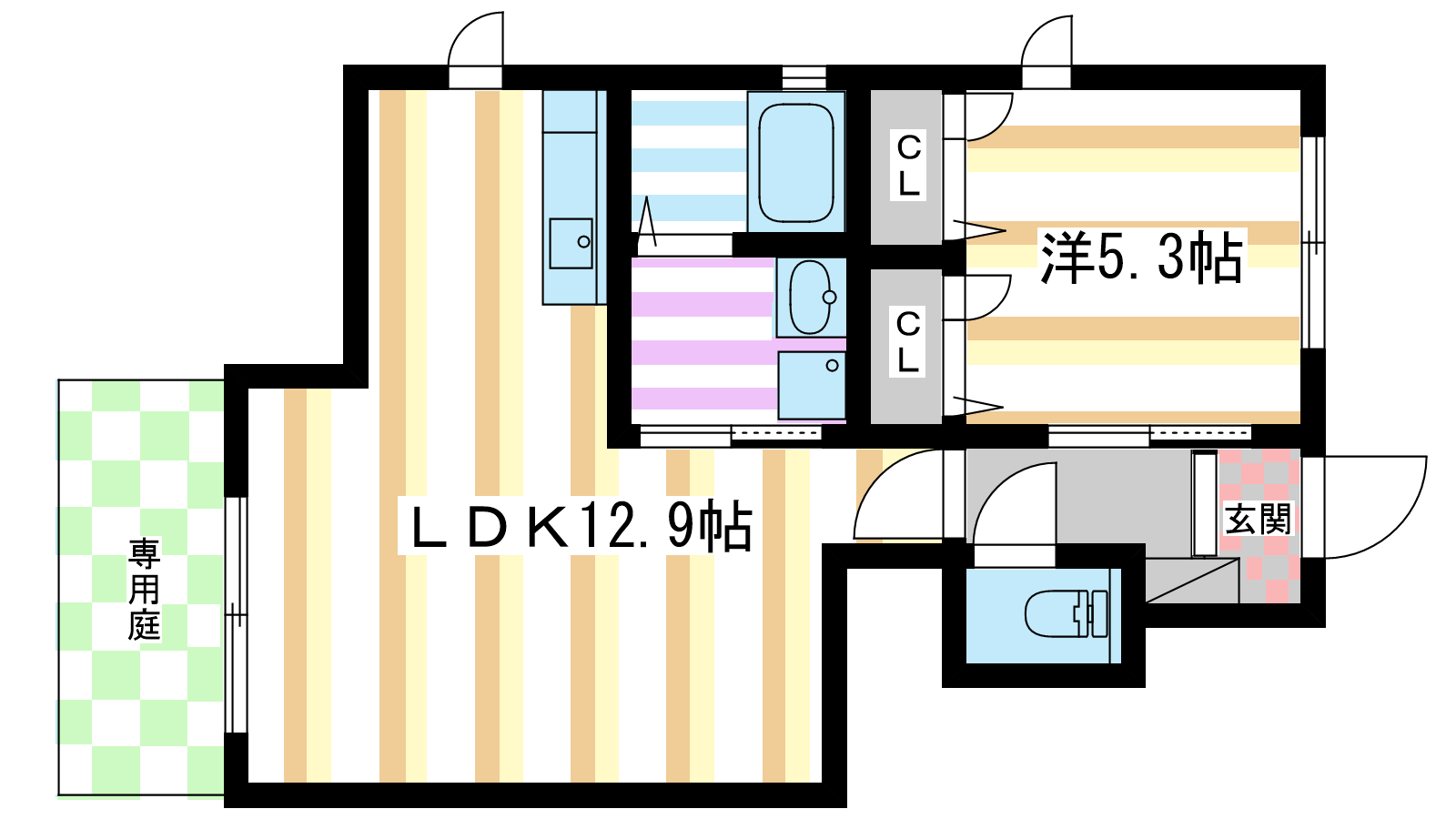 - 洋室5.3帖、LDK12.9帖