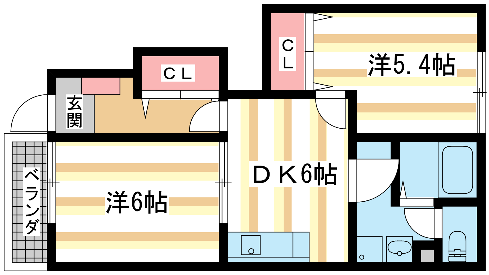 - 洋室6帖、洋室5.4帖、DK6帖