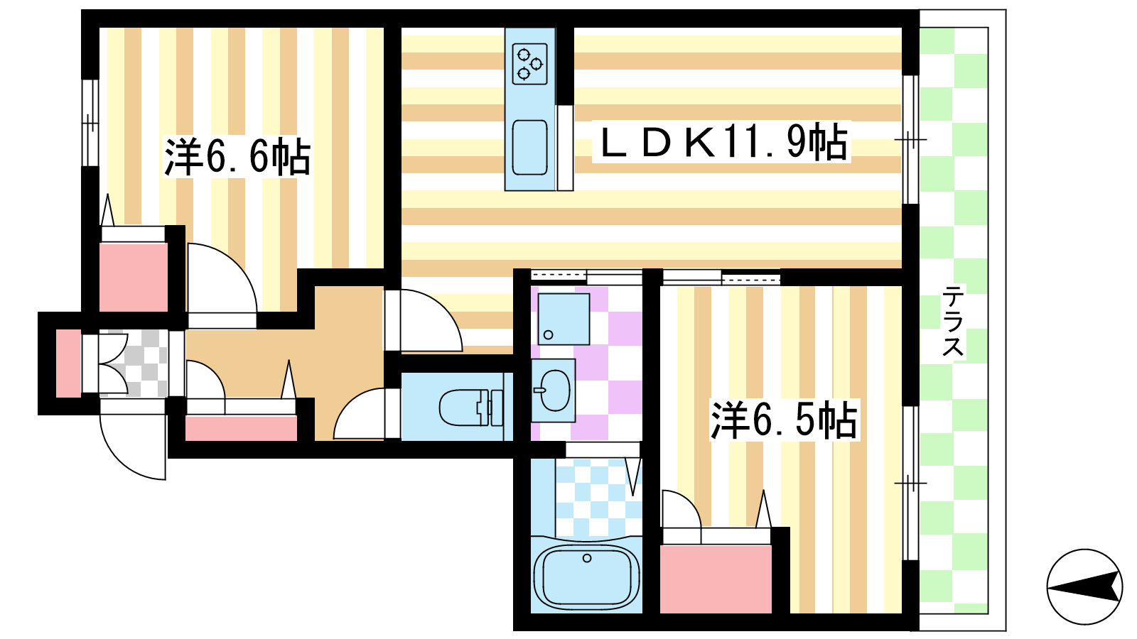 - LDK11.9帖、洋室6.6帖、洋室6.5帖