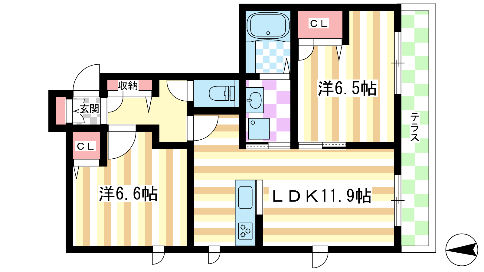 - LDK11.9帖、洋室6.6帖、洋室6.5帖