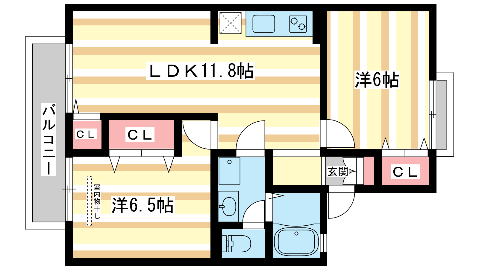 - LDK11.8帖、洋室6.5帖、洋室6帖