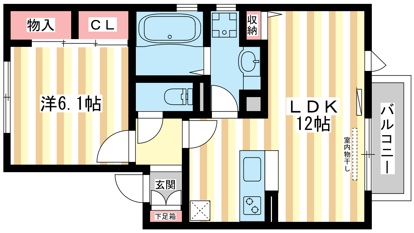 - 洋室6.12帖、LDK12帖