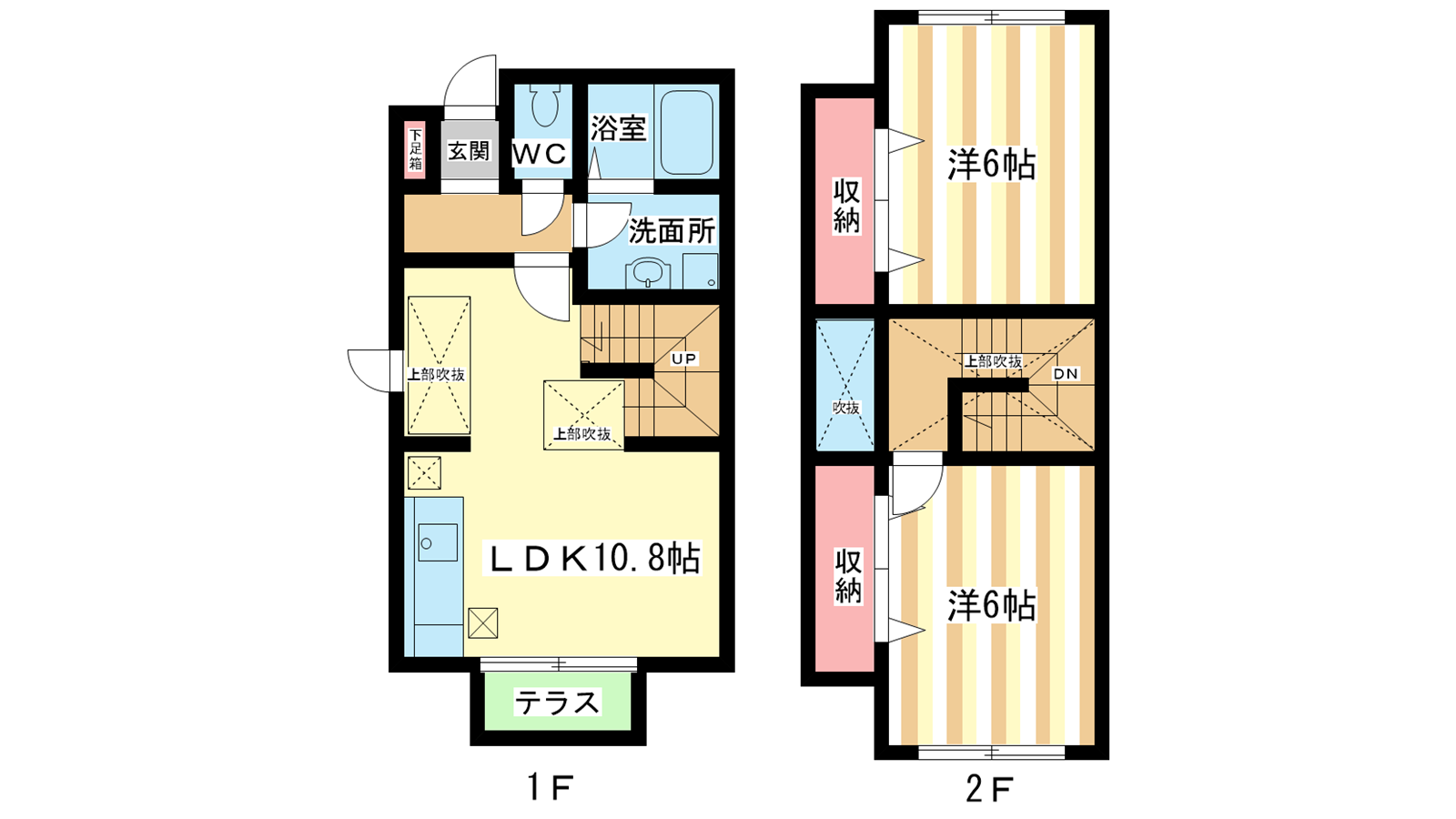- 洋室6帖、洋室6帖、LDK10.8帖