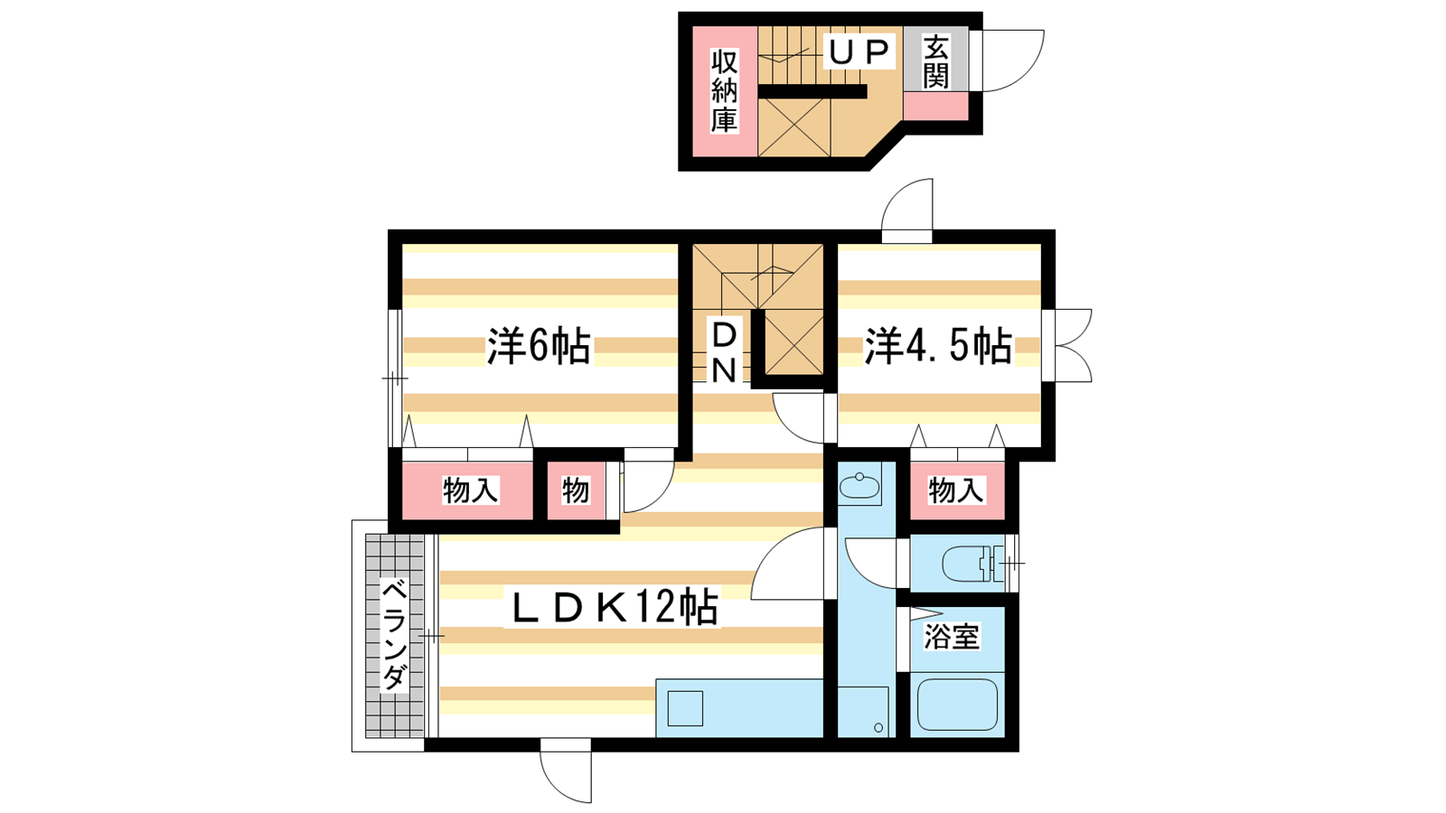 - 洋室6帖、洋室4.5帖、LDK12帖