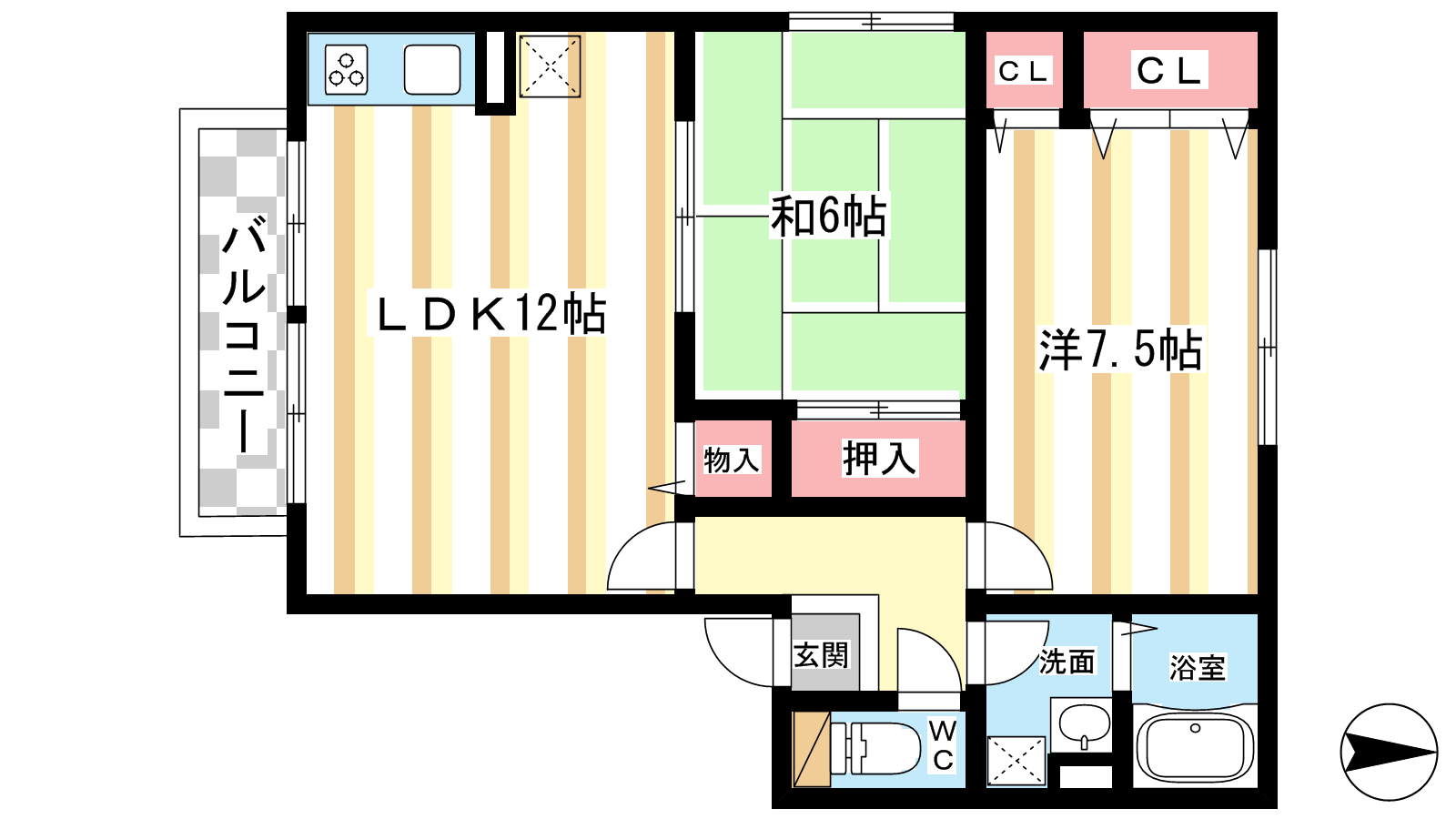- LDK12帖、洋室7.5帖、和室6帖