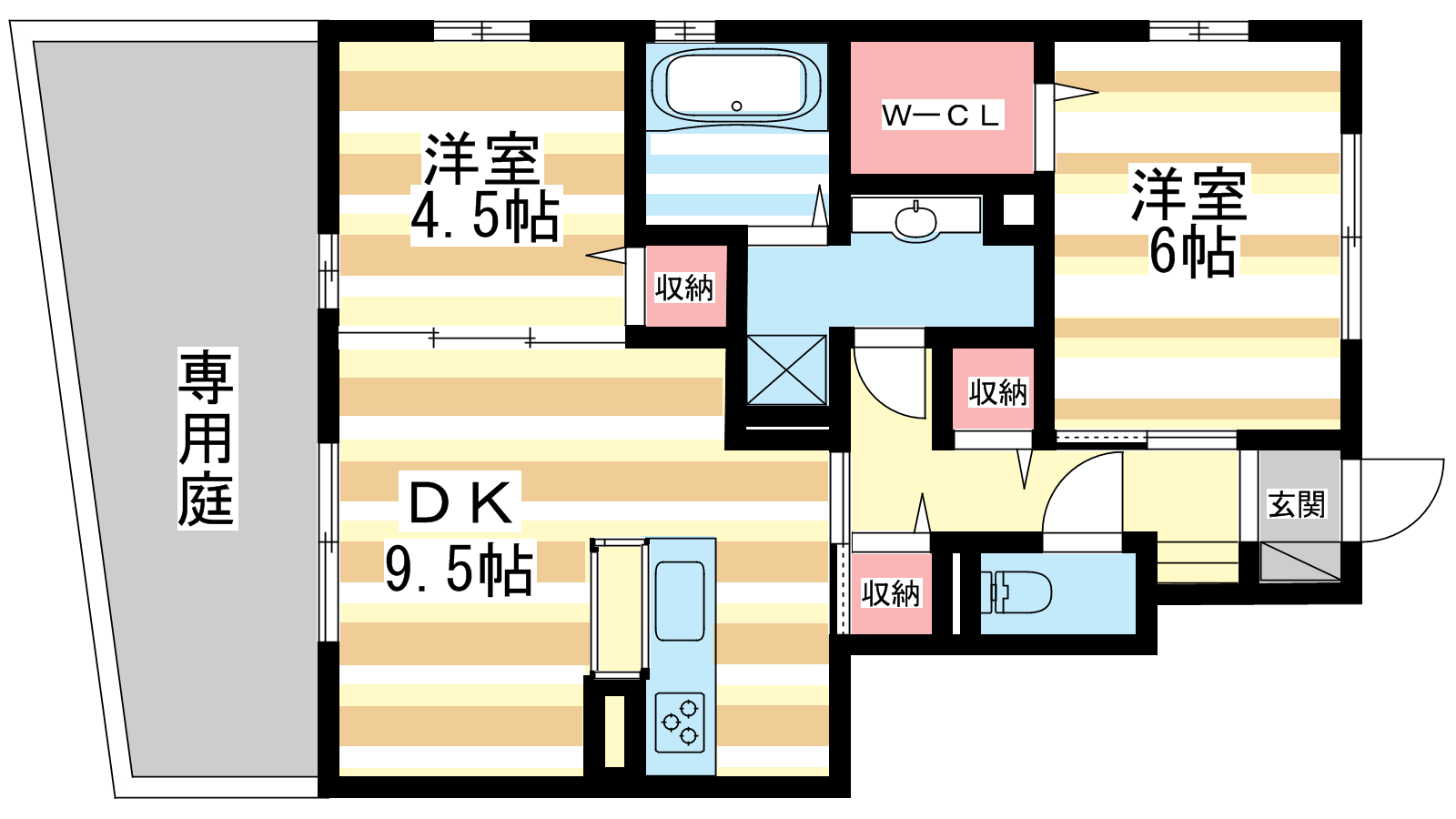 - DK9.5帖、洋室6帖、洋室4.5帖