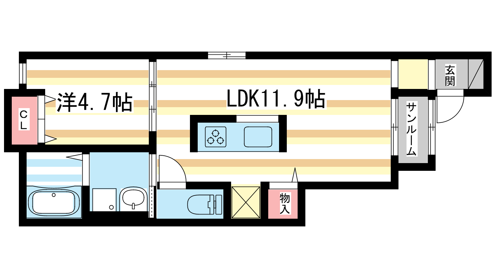 - LDK11.9帖、洋室4.7帖