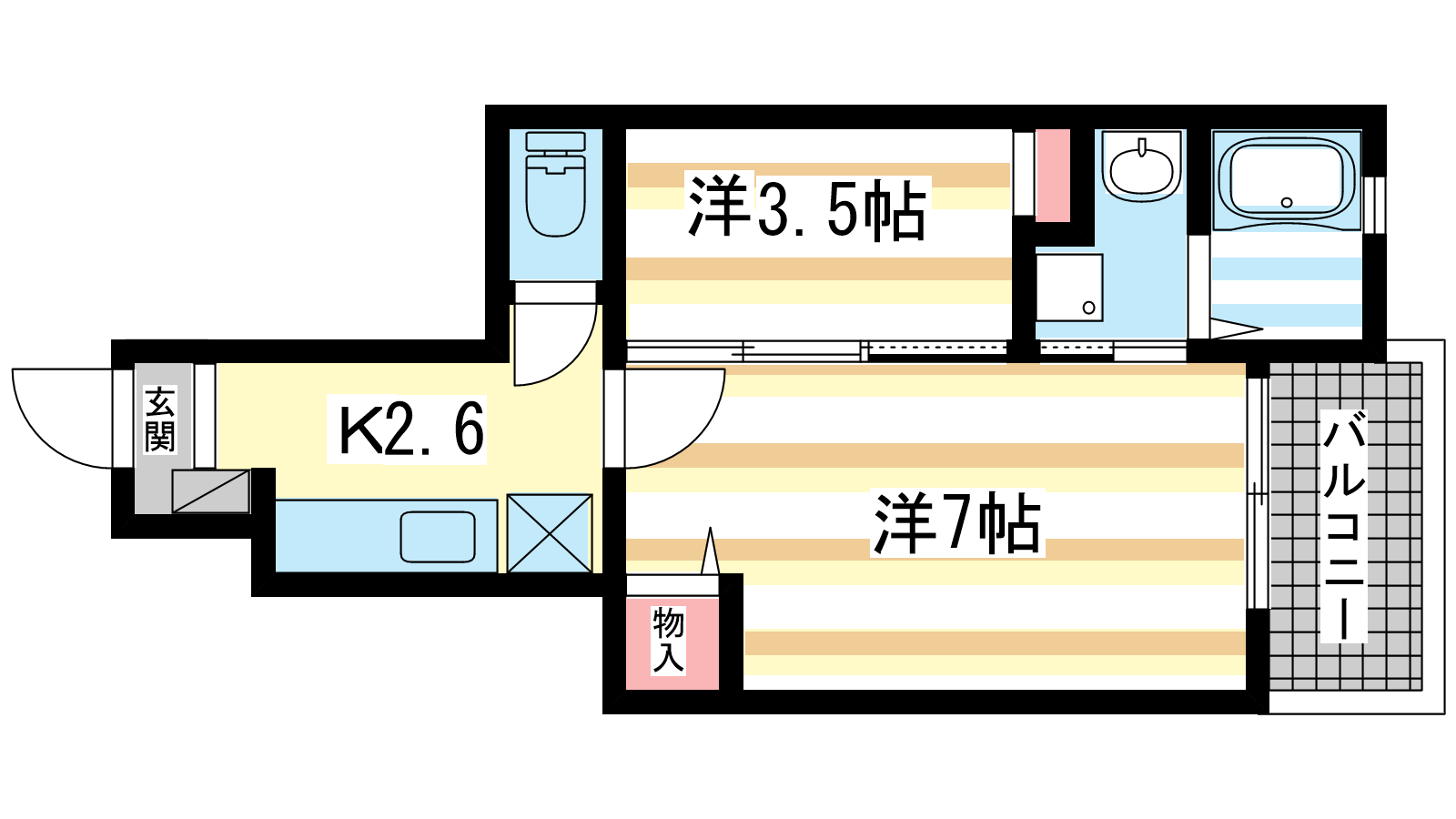 - 洋室7.5帖、洋室3.5帖、K2.6帖