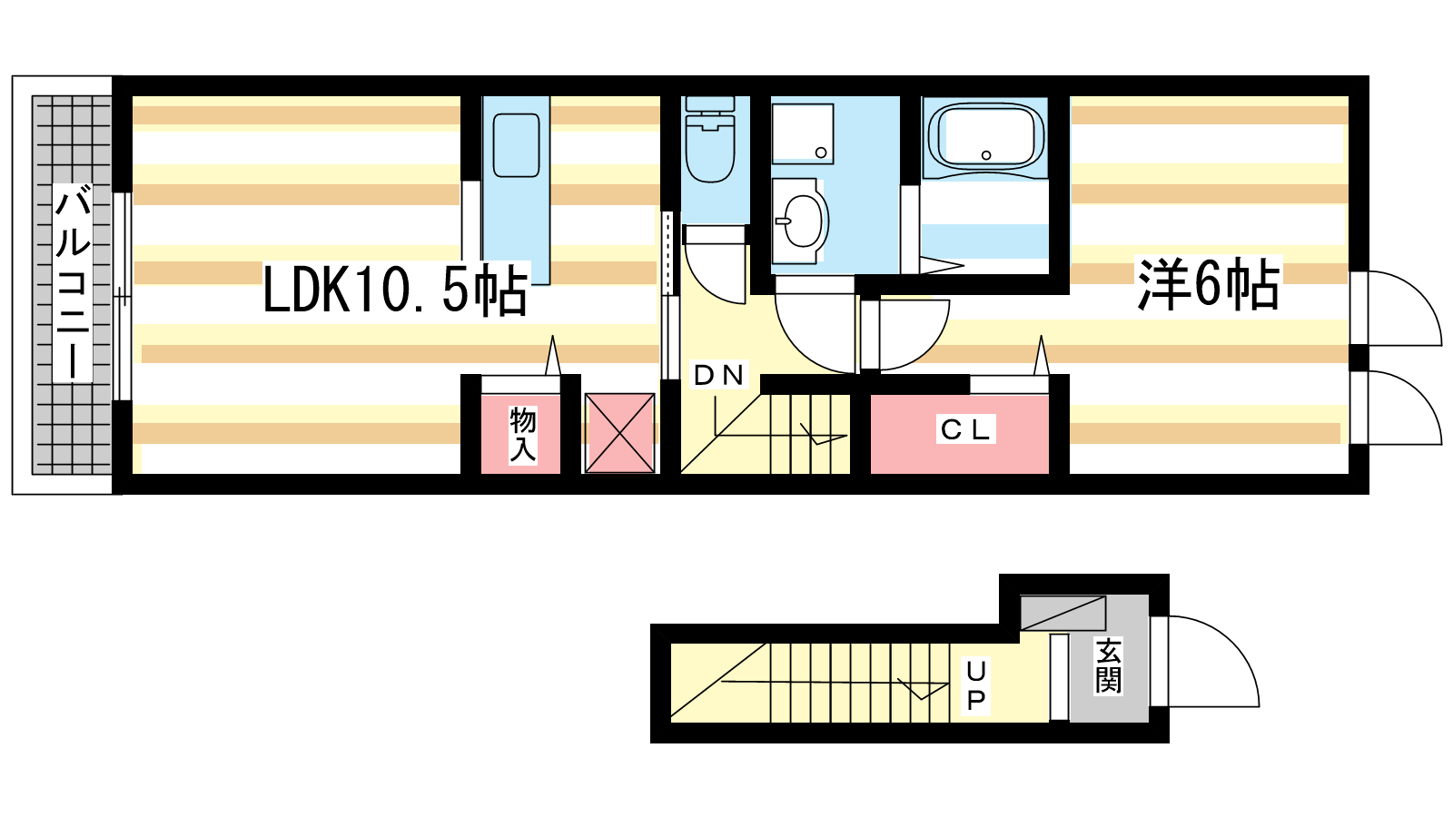 - LDK10.5帖、洋室6帖