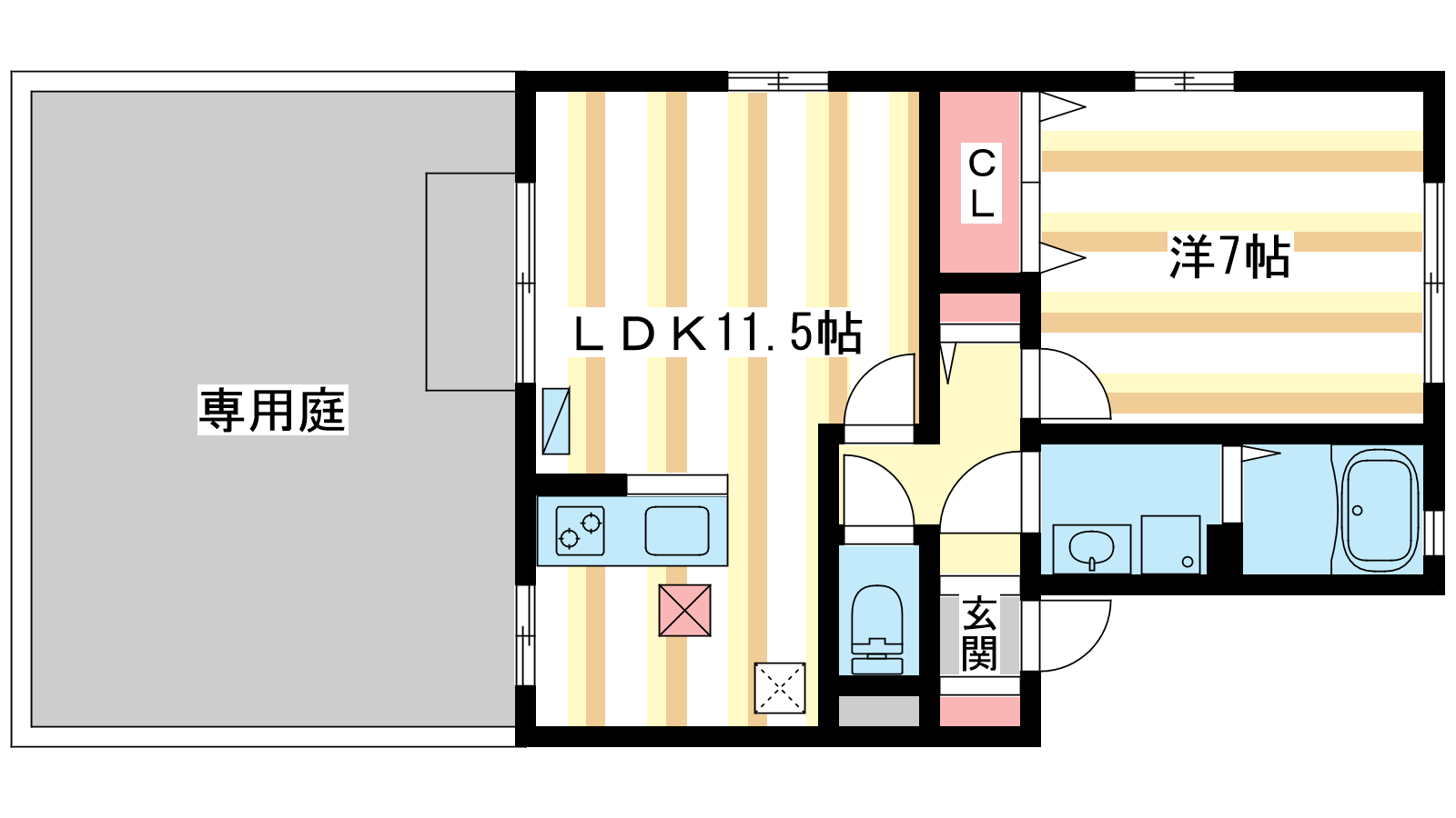 広めの1LDK、専用庭も広いですね。