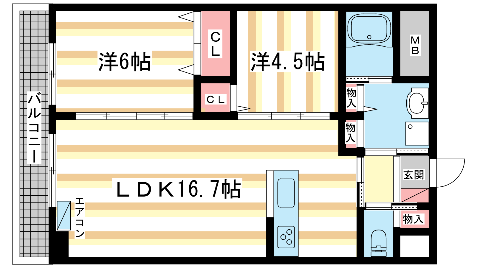 - LDK16.7帖、洋室6帖、洋室4.5帖
