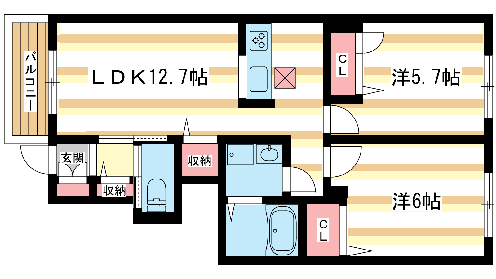 - LDK12.7帖、洋室6帖、洋室5.7帖