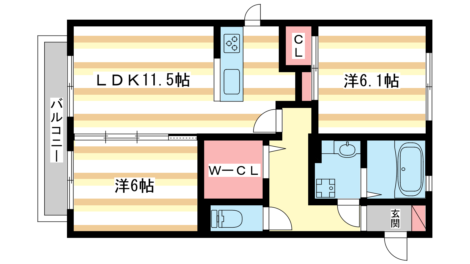 - LDK11.5帖、洋室6.1帖、洋室6帖
