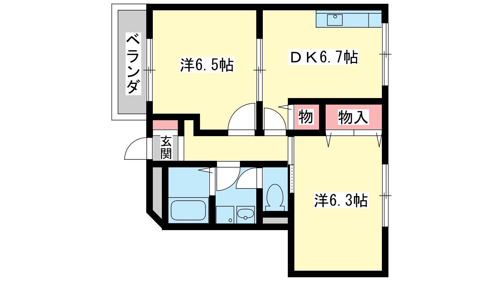 - 洋室6.3帖、洋室6.5帖、DK6.7帖