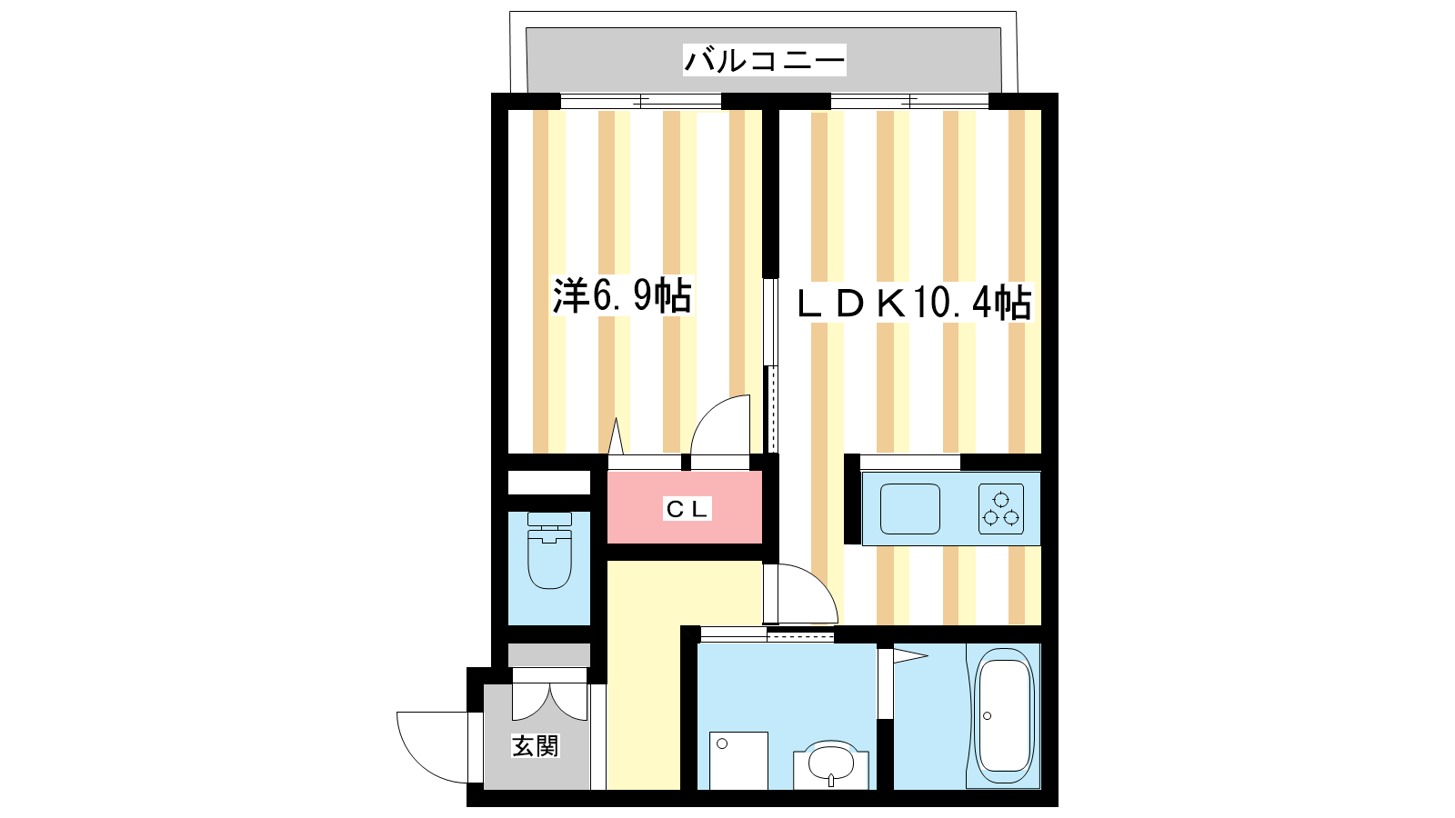- LDK10.4帖、洋室6.9帖