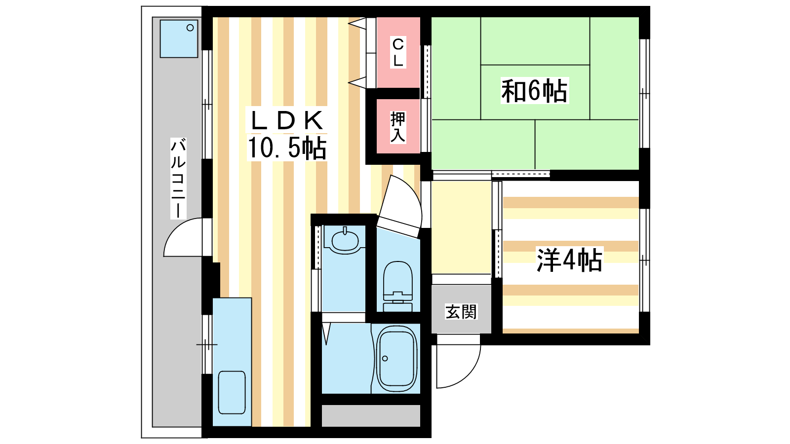 - LDK10.5帖、和室6帖、洋室4帖