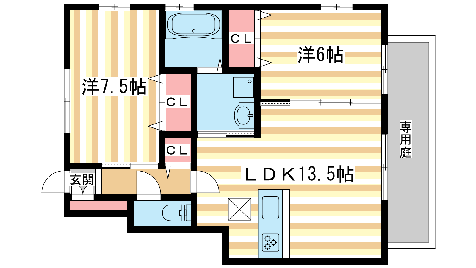- LDK13.5帖、洋室7.5帖、洋室6帖