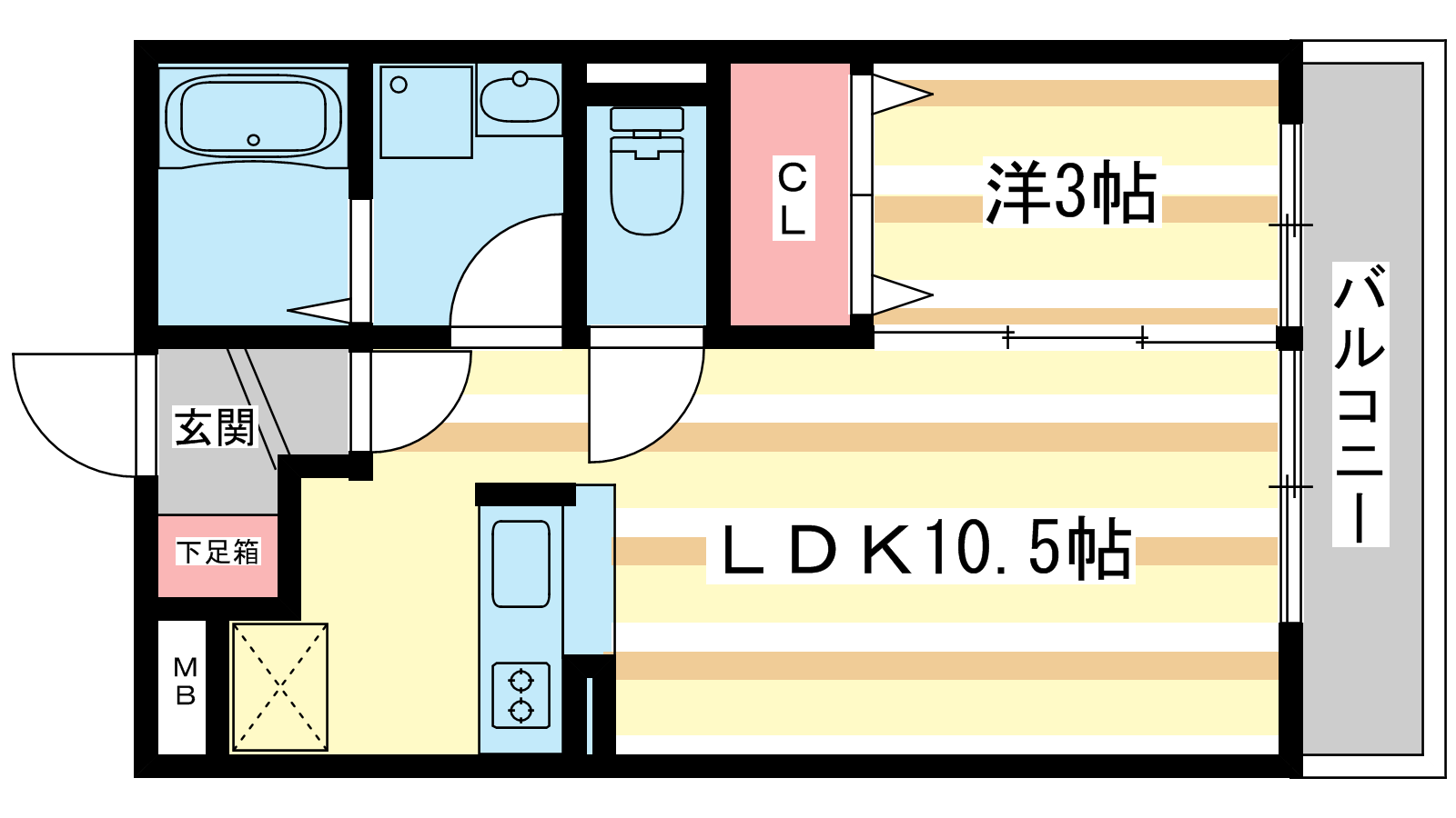 - 洋室3帖、LDK10.5帖