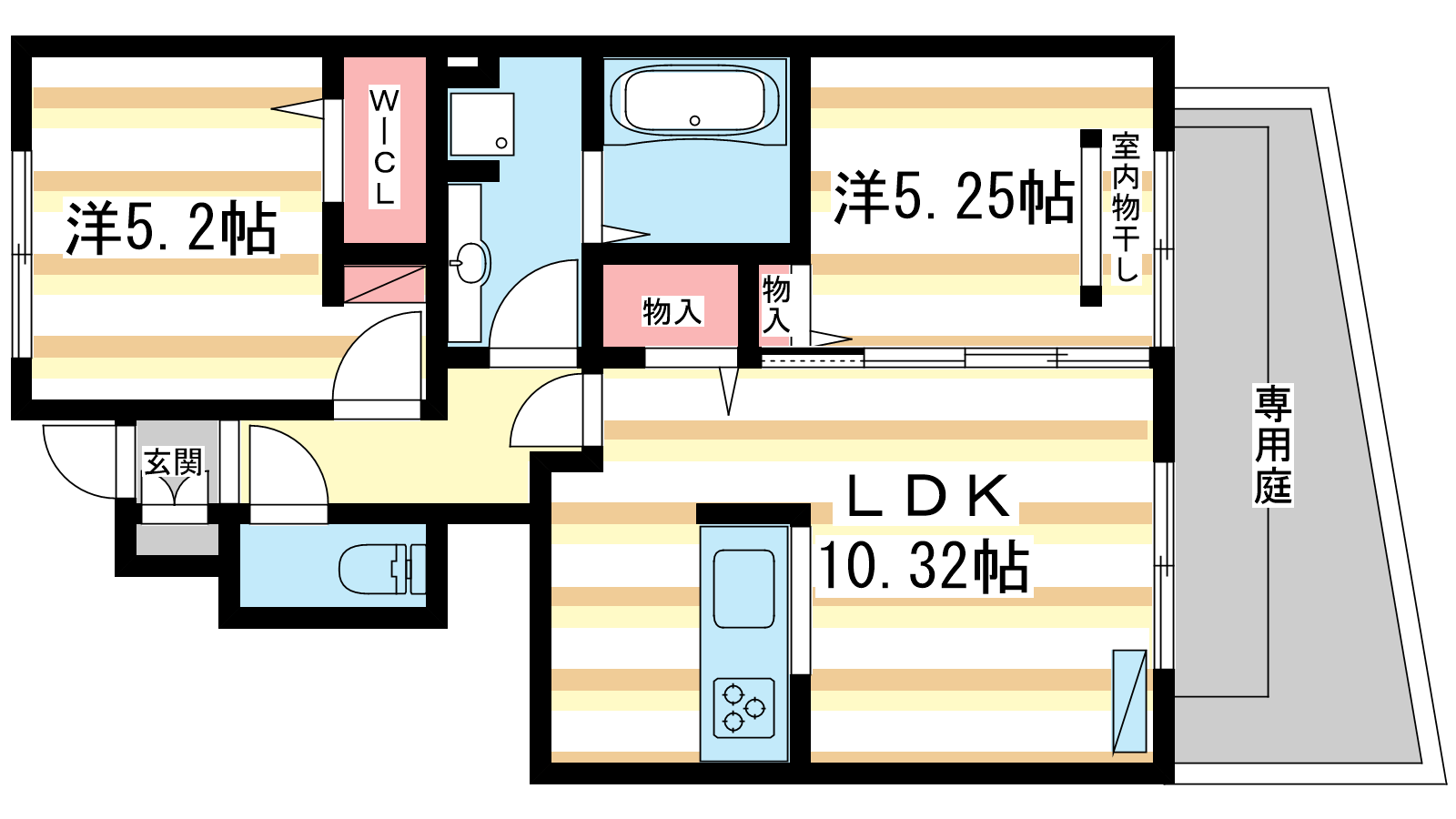 - LDK10.32帖、洋室6帖、洋室5.25帖
