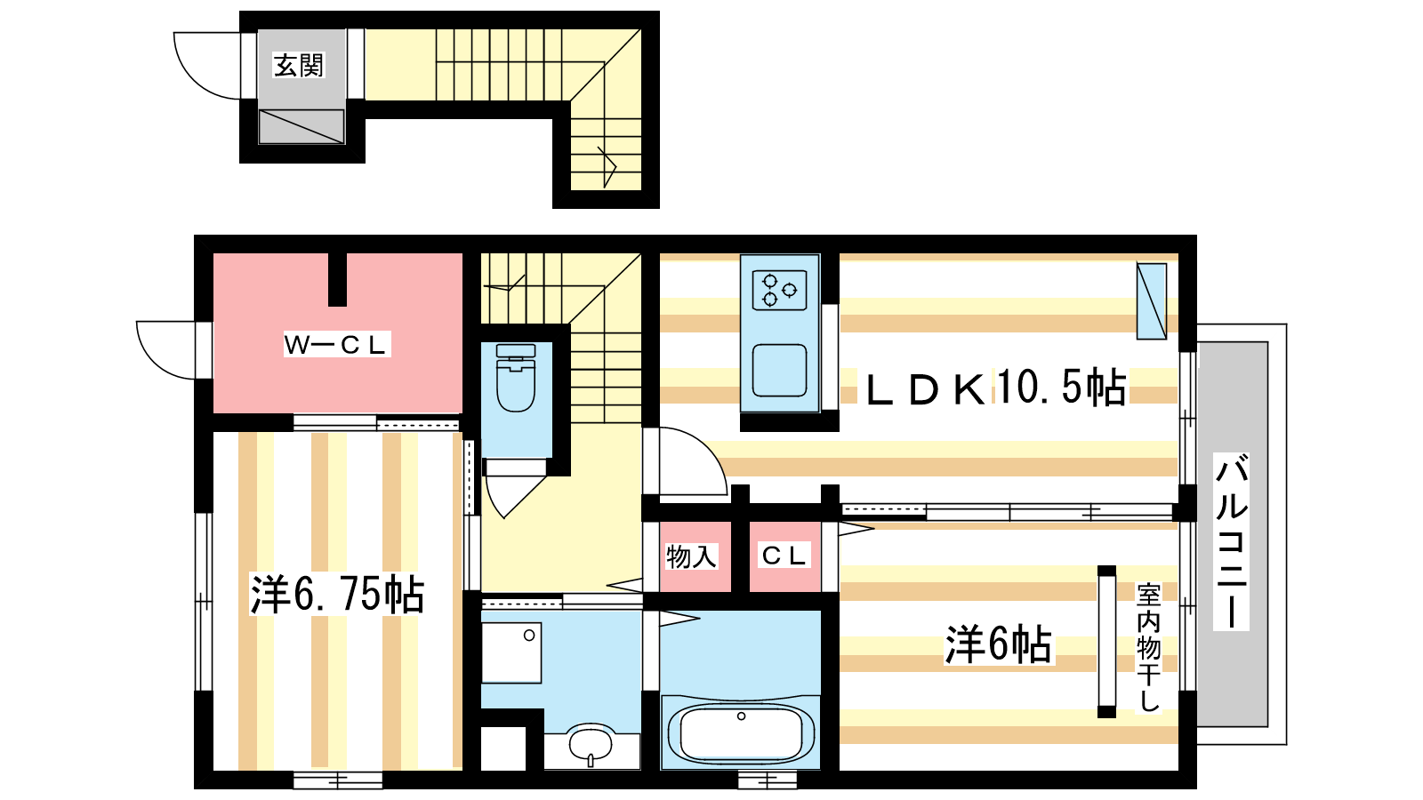 - LDK10.5帖、洋室6帖、洋室6.75帖