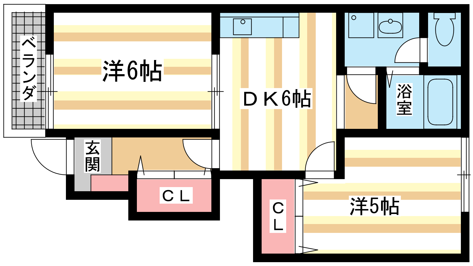 - 洋室5帖、洋室6帖、DK6帖