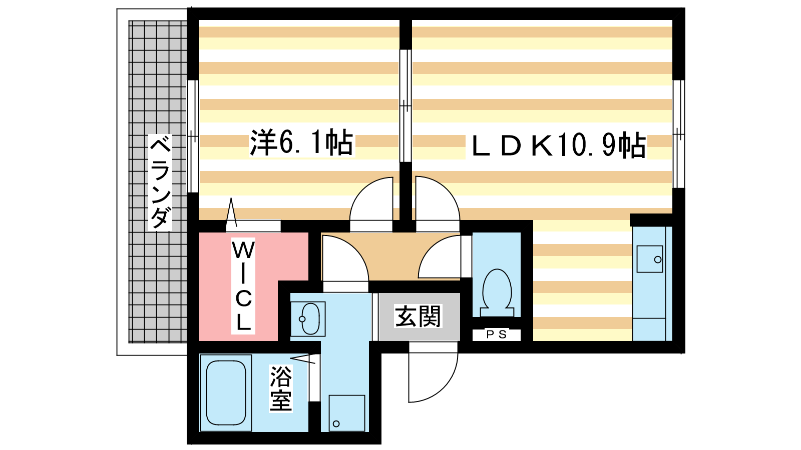 - 洋室6.1帖、LDK10.9帖
