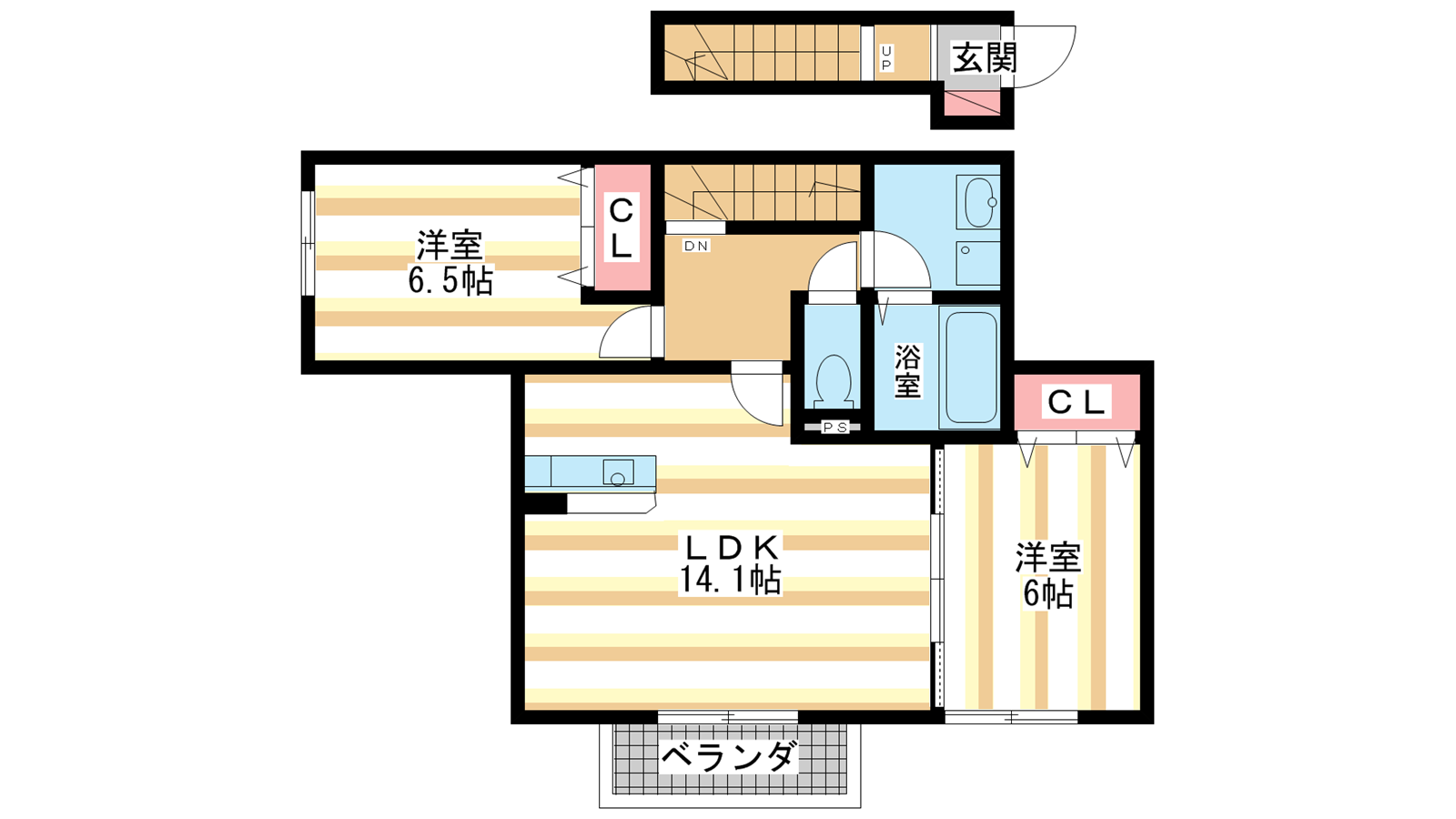 - 洋室6帖、洋室6.5帖、LDK14.1帖