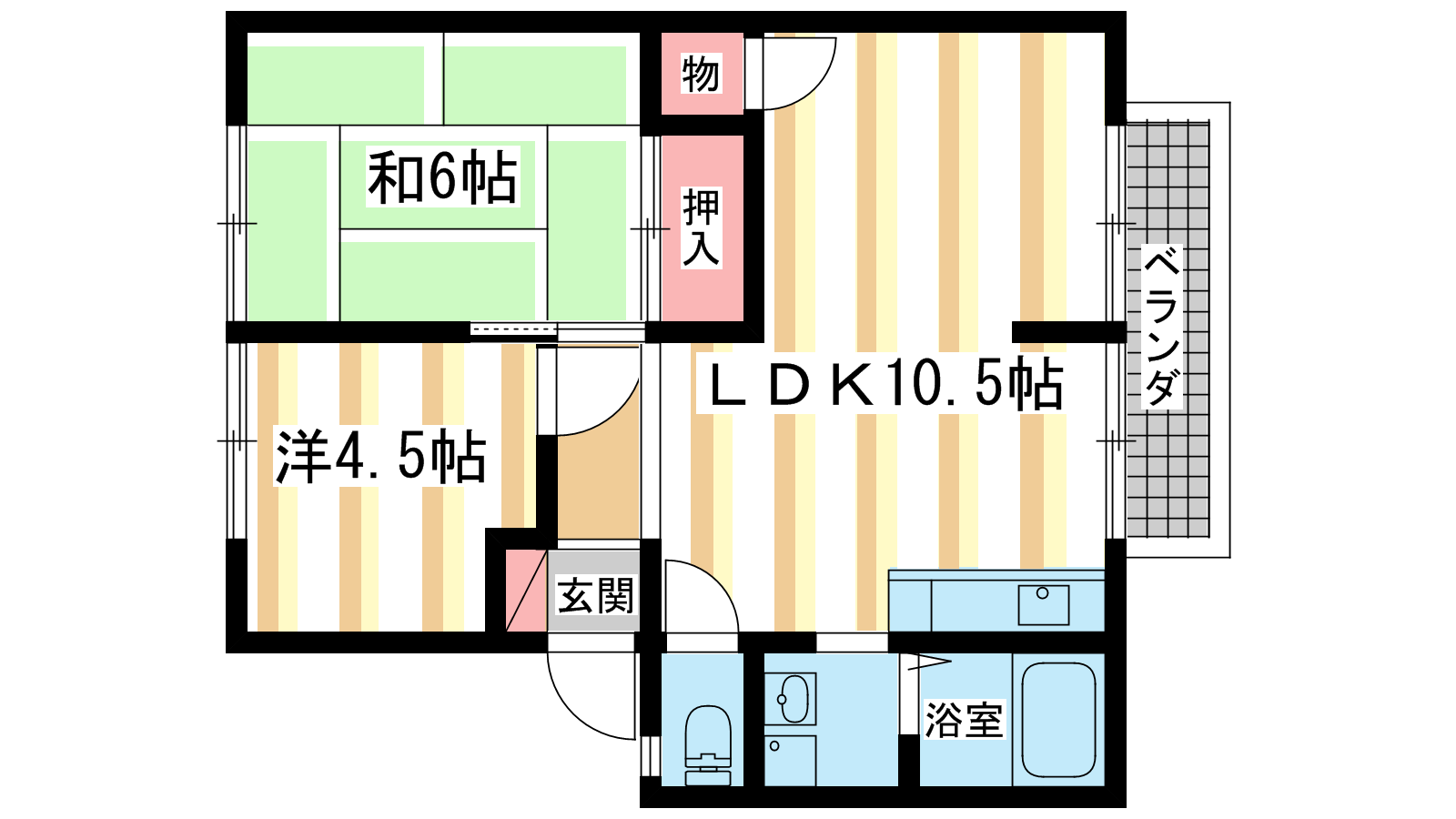 - 洋室4.5帖、和室6帖、LDK10.5帖