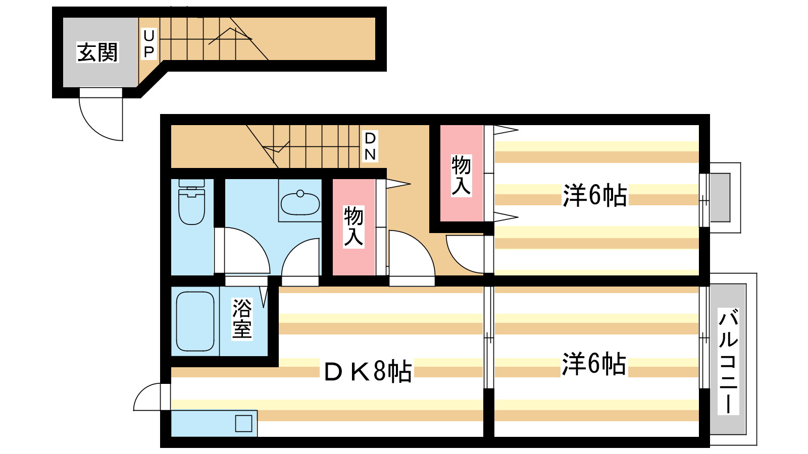 - 洋室6帖、洋室6帖、DK8帖