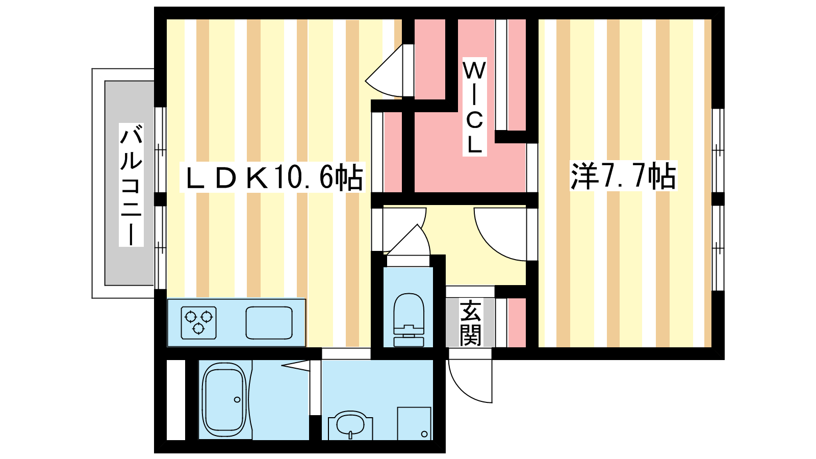 - LDK10.6帖、洋室7.7帖